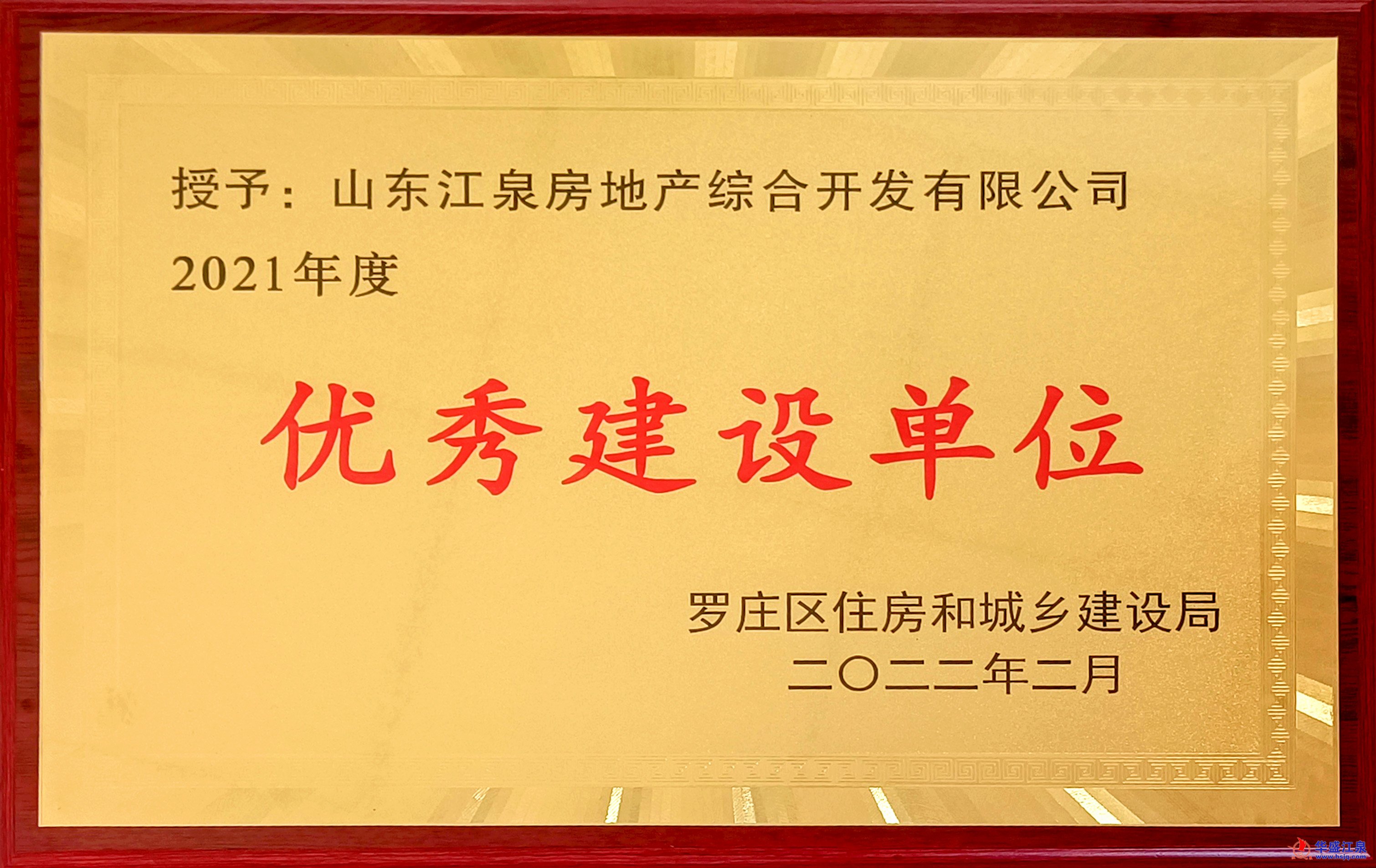 虎年新春,捷報頻傳。2月13日,山東江泉房地產綜合開發有限公司被羅莊區住建局表彰為“2021年度優秀建設單位”。在此之前,山東江泉物業管理有限公司被羅莊區住建局、羅莊區物業管理行業協會表彰為“2021年度物業領域集中整治優秀企業”,由其服務和管理的江泉國際、歐羅花園兩家小區同時獲得羅莊區住建局、羅莊區物業管理行業協會表彰的“物業服務標準化建設優秀小區”榮譽稱號。