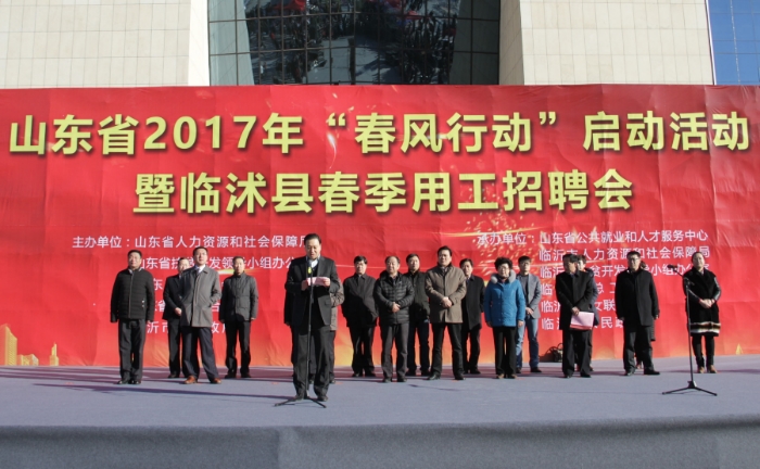2017年1月20日,華盛江泉集團人力資源部相關負責人參加了省人社廳、省扶貧辦、省總工會、省婦聯和臨沂市人民政府聯合舉辦的山東省2017年“春風行動”啟動活動暨臨沂市臨沭縣春季用工招聘會出席啟動儀式的領導有省人社廳黨組副書記、副廳長夏魯青,省總工會副主席趙立群,省婦聯副巡視員盛巧俐,省公共就業和人才服務中心黨委書記、主任趙振國,省扶貧辦行業社會組副組長王又磊,省人社廳相關處室的領導,市委常委、副市長尹長友,市人社局黨組書記、局長邢軍,市總工會副主席張濤,市婦聯副主席孫靜,市人社局黨組成員、市人力資源開發服務管理辦公室主任王君川,市人社局黨組成員、副局長彭向榮等。省內300多家企業參加了此次活動。